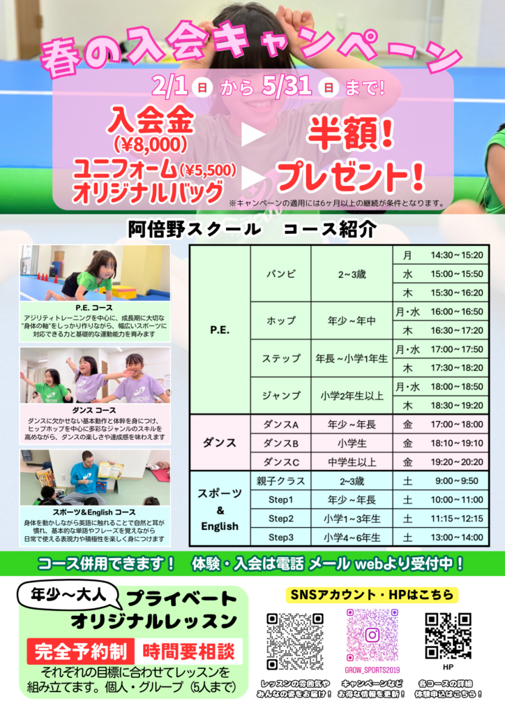 子どもたちの「できた!」を応援するスポーツ教室GROWスポーツアカデミー春の大キャンペーン開催中!